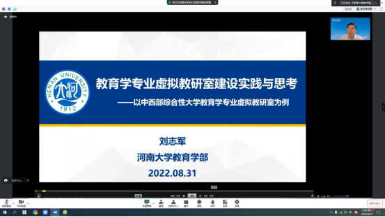 受天津职业技术师范大学职业教育学院邀请,教育学部部长刘志军教授于8月31日上午在“教育部职业教育学课程虚拟教研室建设启动会”上作题为《教育学专业虚拟教研室建设实践与思考》的首场特邀报告,以其领衔建设的中西部综合性大学教育学专业虚拟教研室为例进行了虚拟教研室建设的经验分享与交流。来自全国各地高校的近200名专家、教师线上线下参加了此次启动会。