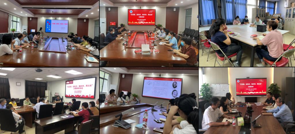 本次活动以基层教学组织为单位分别开展,以学院1923-2022年的学科大事记为主要素材,各教研室主任、实验教学和分析测试中心主任认真搜集校史、院史材料,梳理校史、院史中的重要发展历程和重大事件,尤其对1923年化学专业设立以来,相关学科涌现出的先进人物和事迹进行了精心的整理。活动开展期间,各位主任带领老师认真学习史料,通过图片、视频等载体生动地再现了学校和学院发展历程中涌现出的优秀人物和感人事迹。随后,老师们纷纷发言,谈感想、谈体会,老教师们打开储藏记忆的心扉,有在铁塔湖边求学的美好往昔,有与一届届学生相处中留下的珍贵记忆。过往的点点滴滴,虽有不易却处处幸福,拥有回忆,岁月方满溢诗情。最近几年入职的年轻教师感触最深,他们深刻感受到了学校赓续不断、为国育人育才的初心和使命,也为110年来学校所取得的办学成就感到无比的自豪。老师们还回忆了学院发展历程中的一些重要事件,追忆了为学院发展作出突出贡献的优秀教师和他们的感人事迹。最后,老师们也针对学院发展面临的机遇和挑战进行了分析和讨论,并为学院未来的发展提出了有建设性的意见和建议。
