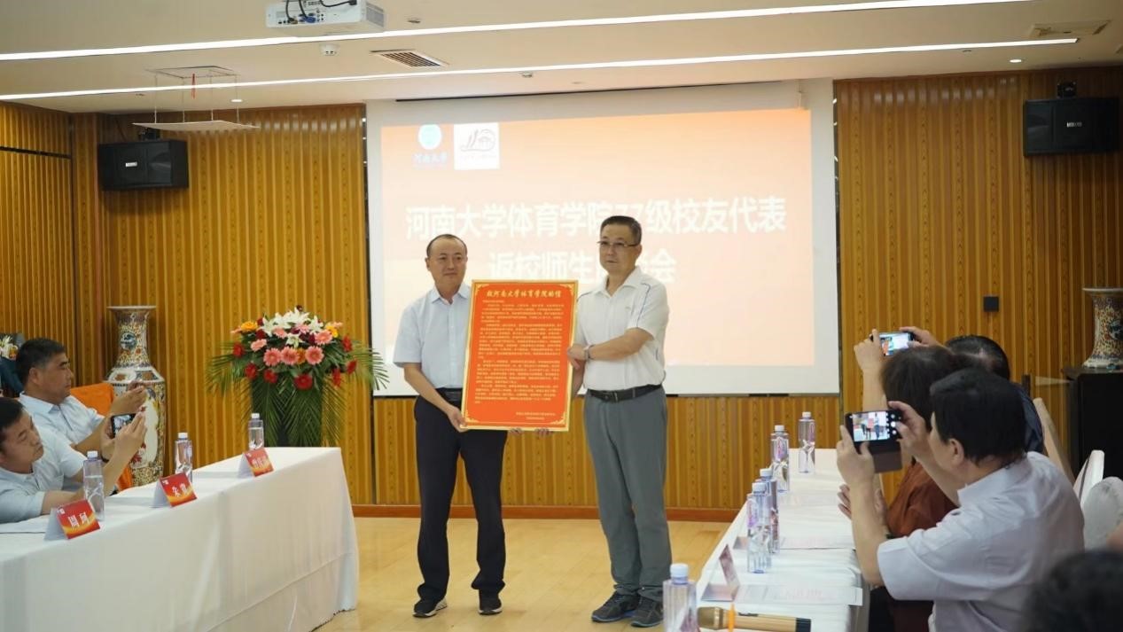 校友代表向体育学院赠送纪念品