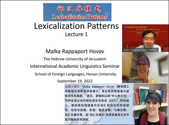 米兰平台第五届语言学术周暨“海外高端专家系列讲座”(100~109)在众多师生的期待下于9月19日成功拉开序幕,本活动将持续5天时间,每天两场高端讲座。为拓展广大师生的国际视野,营造良好的学术氛围,外语学院特邀请以色列希伯来大学语言学系教授Malka Rappaport Hovav和英国剑桥大学理论级应用语言学系教授Ian Roberts做系列讲座,他们的主题分别为“词汇化模式(Lexicalization Patterns)”和“普通语言学理论(General Linguistic Theories)”。此次系列讲座分别在Zoom平台和腾讯会议平台进行,有来自国内外知名高校480多位师生广泛关注并热情参与。讲座伊始,外语学院院长杨朝军教授致欢迎辞,并简要介绍了两位教授的教育经历、研究领域及学术成就,同时对他能在百忙之中抽时间为学院师生作线上报告表达了诚挚的感谢。